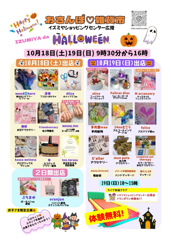 また、10/18(土)・19(日)のイズミヤショッピングセンター広陵店での同イベントおさんぽ♡雑貨市は、2日間合計で27ブースがあるそうです☆