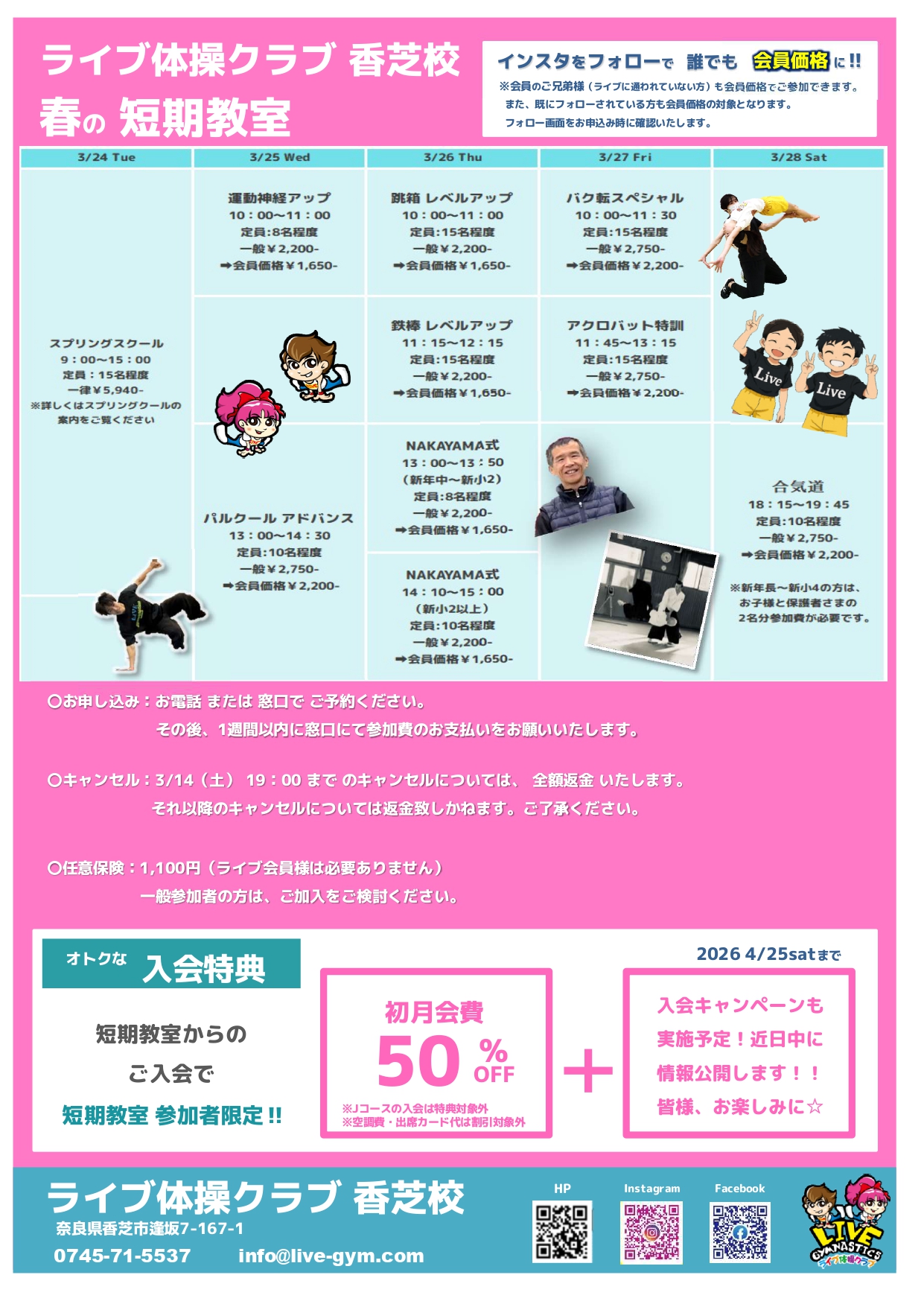 2/16(金)より『ライブスプリングスクール2024in香芝校』申し込みスタートしました‼️